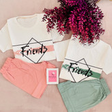 رتبه اول کیوتی و شیک بودن ست کراپ شورتک فرندز انقدر قشنگه که کراپشو با شلوارهای دیگه هم میتونی بپوشی مناسب خونه ، باشگاه