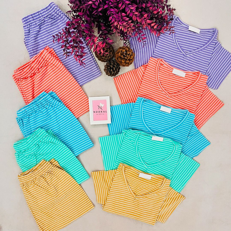 ست دو تکه تیشرت و شلوارک زنانه راه راه